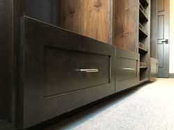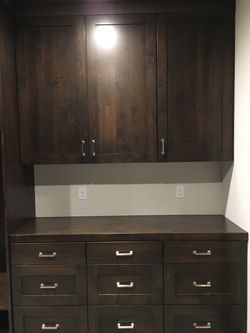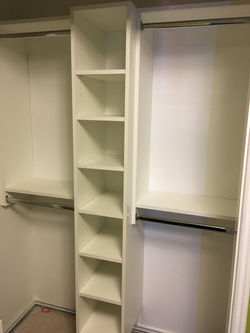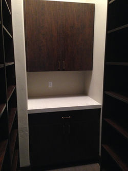 Our specialty is in fully customizable wood grain melamine closets, but we can also do them in solid hardwood (stain & finish or paint & glaze). Besides traditional closets, we can also do kitchens, bathrooms, libraries, laundry rooms, offices, entertainment centers, and more.